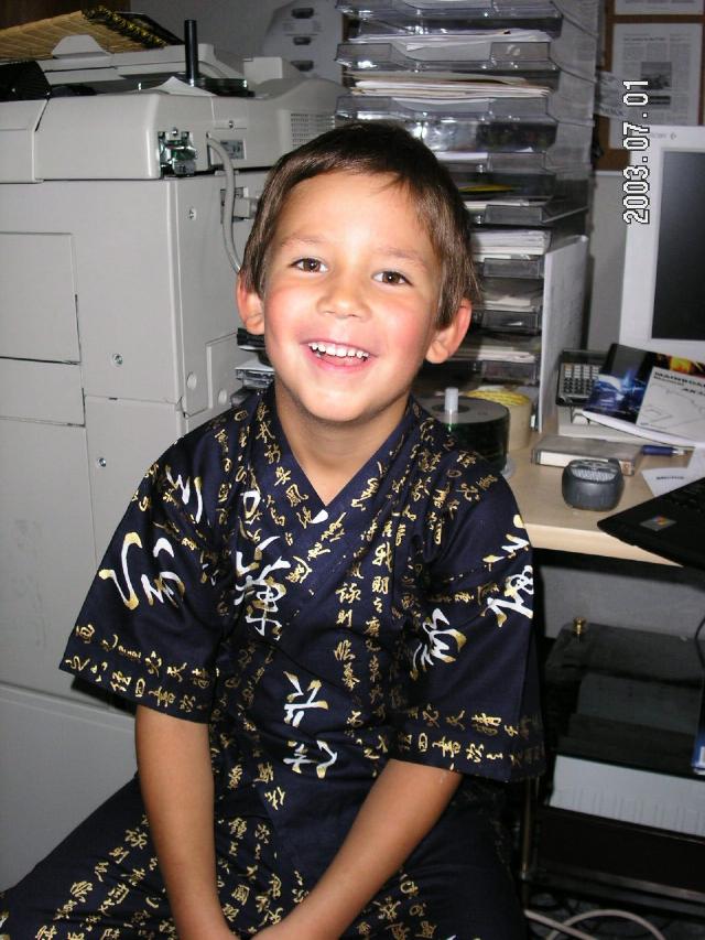 Oliver君はゲームで知っていた空手の真似をしていた